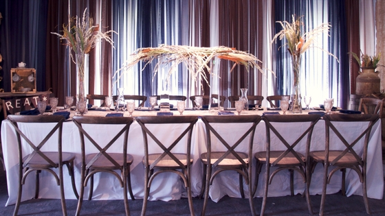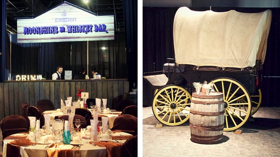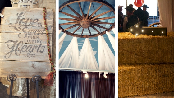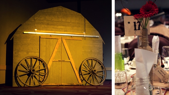 The smallest details can transform any space into a perfectly themed event.  How perfect are these accents?  The wagon wheel is one of our absolute favorites.  Ceiling swag, chandeliers, greenery, and more can all be hung from this beautiful decor piece.